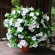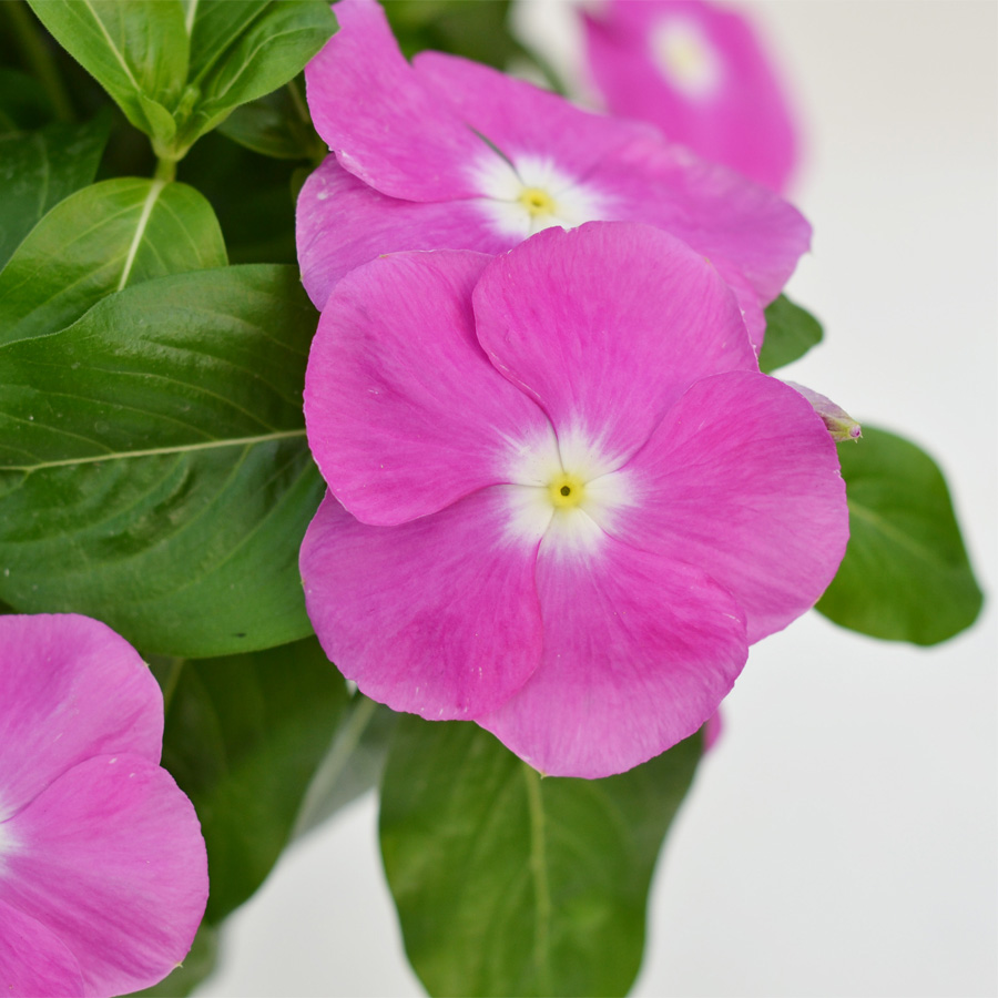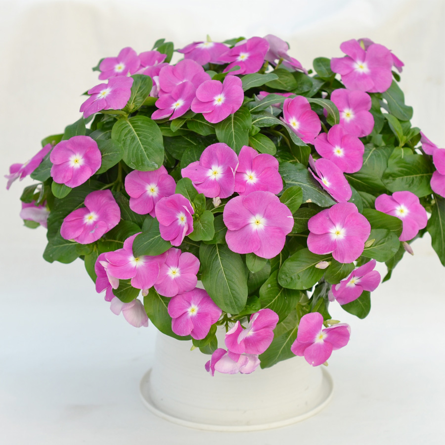 This most outstanding F1 Hybrid Trailing Vinca produces early blooms with extra-large flowers. Plants are strongly branched and vigorous with dark green foliage and the ability to self-clean. Mega Flow has high-impact blooms with overlapping petals. Its trailing habit makes it ideal for hanging baskets. Plants are exceptionally heat-tolerant.